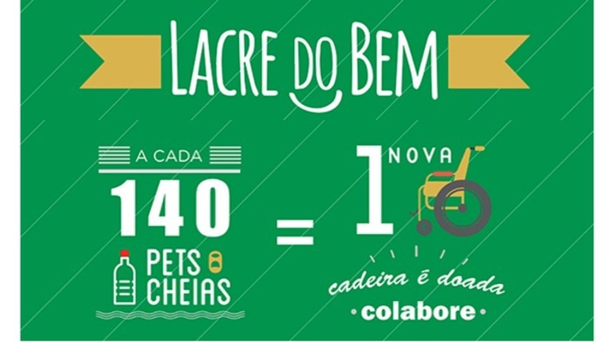 Para uma cadeira de roda, precisamos de 140 garrafas (2 litros) cheias de lacres.